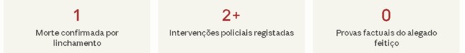 Fontes: relatos verificados no terreno, canal "O Daniel" (vídeo), PRM — Polícia da República de Moçambique. Este artigo não reproduz nem valida as crenças descritas, que carecem de qualquer fundamento factual ou científico.